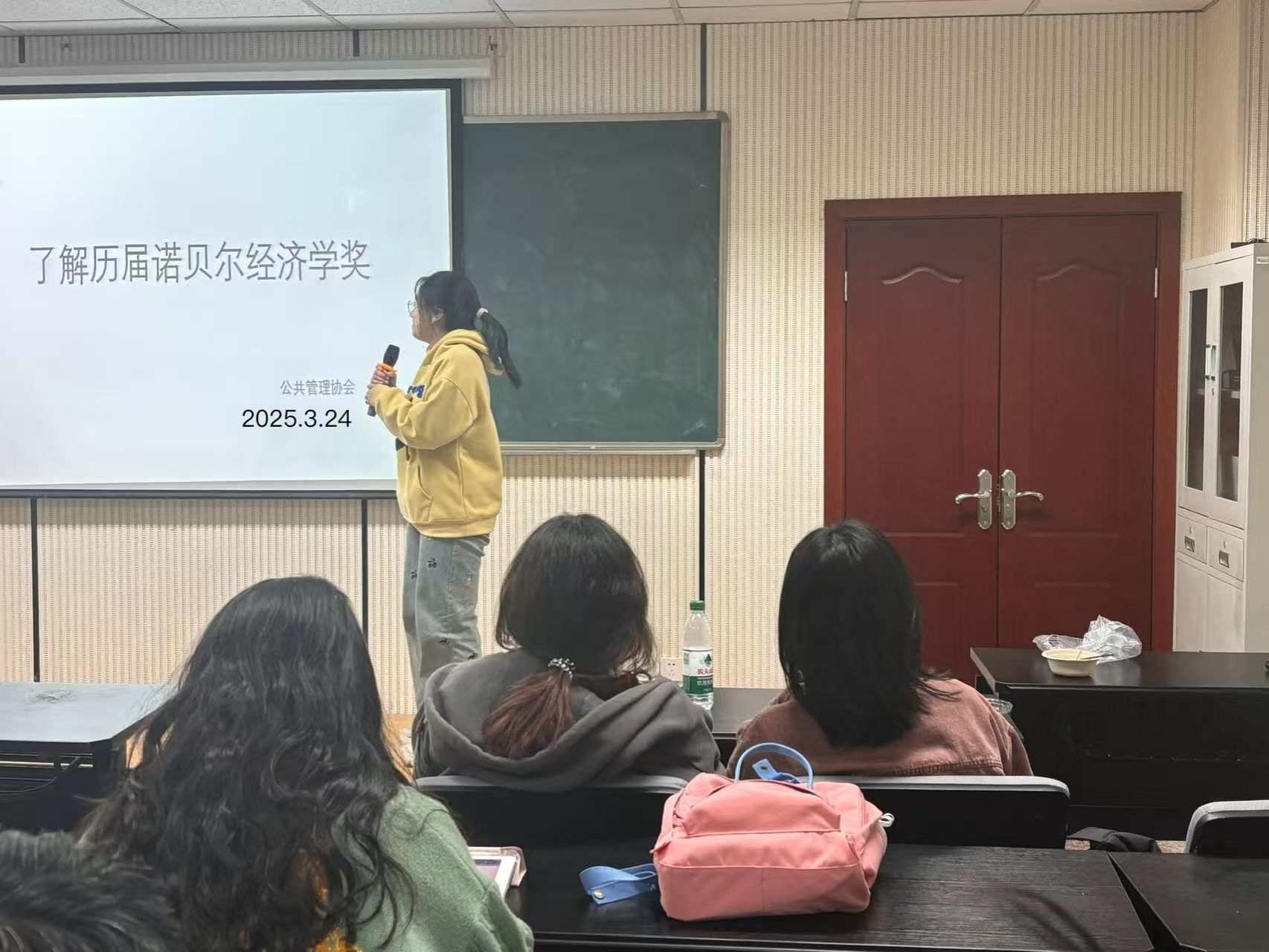 公共管理协会于公管大楼102教室举办了一场聚焦诺贝尔经济学奖的分享会,吸引众多同学踊跃参与,现场学术氛围浓厚。