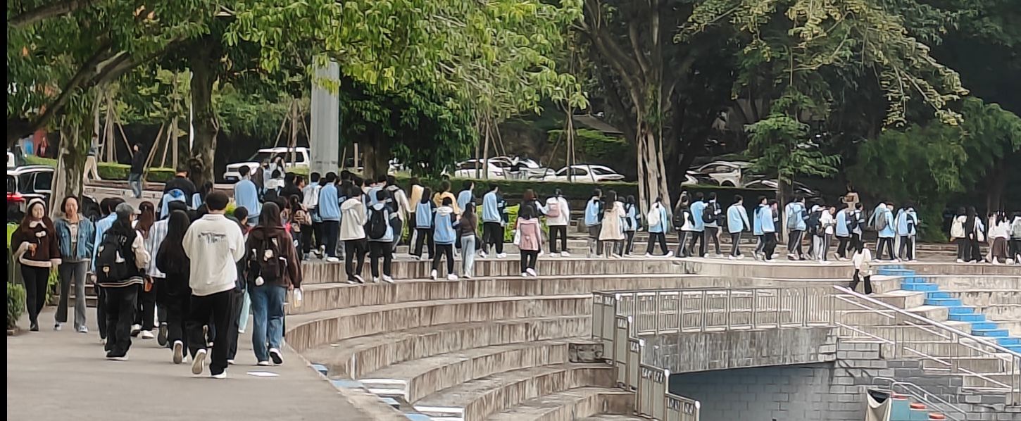 A区钟塔拉开序幕。南宁三中的师生们抵达后,迅速分配小组带领对应的班级。活动伊始,王丽娟同志及一、四支部的成员们为远道而来的南宁三中研学团队表达了热烈而真挚的欢迎之情,并介绍了活动的流程:校园参观、集体合影、参观深空探测联合研究中心及食堂共进午餐。