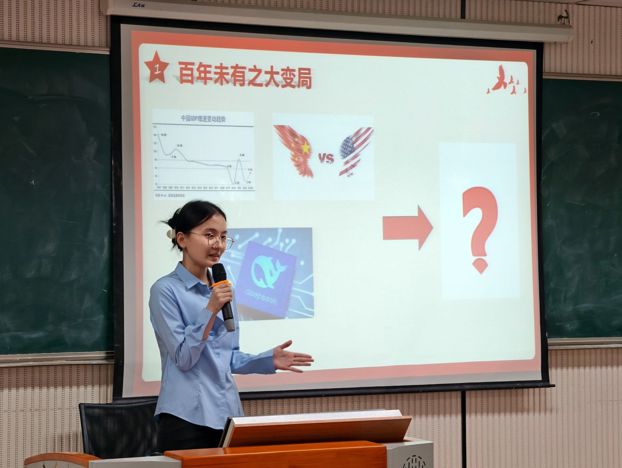 2024级经济学2班的罗雨晴同学以“草鞋踏破千重隘,薪火燃新百代风”为题,通过草鞋背后的感人红军故事,展现了中华儿女深沉的家国情怀;同班黄裎博同学阐述了新时代青年应如何传承抗战精神,在民族复兴征程中贡献青春力量。