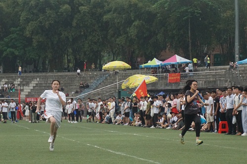 运动会最后一个项目是最激动人心的20*50迎面接力。夕阳斜射,田径场上已是人山人海,公管健儿们蓄势待发。在迎面接力中,伴着令人振奋的鼓声,运动员们尽力向前方冲去,田径场上不断传来加油声。当同学们还沉浸在激动中时,学校工作人员已完成统计工作,团体成绩结果公布。随后,颁奖仪式在主席台下进行。