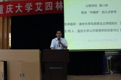 受聘仪式后,艾四林为在座师生分享了他对“中国梦”的几点思考。他讲述了十八大以来的几大理论成果,他说,习近平总书记在国家博物馆的重要讲话,成为中华民族实现中国梦的伟大开端。艾四林针对时下关于中国梦的一些争议提出了自己的独特见解,他说中国梦是全中国人民的梦,是国家富强、民族复兴、人民幸福、社会和谐之梦,中华民族要实现伟大复兴的梦想,就必须坚定不移地走中国特色社会主义道路,也要坚定不移地弘扬以爱国主义为核心的民族精神,必须凝聚中华民族的力量,才能最终实现。中国梦的提出,是抢占世界道德至高点,提升中国文化软实力的必经之路,有了梦想,就有了奋斗的不竭动力。在接近两个小时的演讲中,艾四林用清晰的逻辑思维、精彩的语言、睿智的思考诠释了伟大的中国梦,他让青年学生们认识到实现中国梦是义不容辞的责任,他殷切期望同学们都能为中国梦的实现努力奋斗。