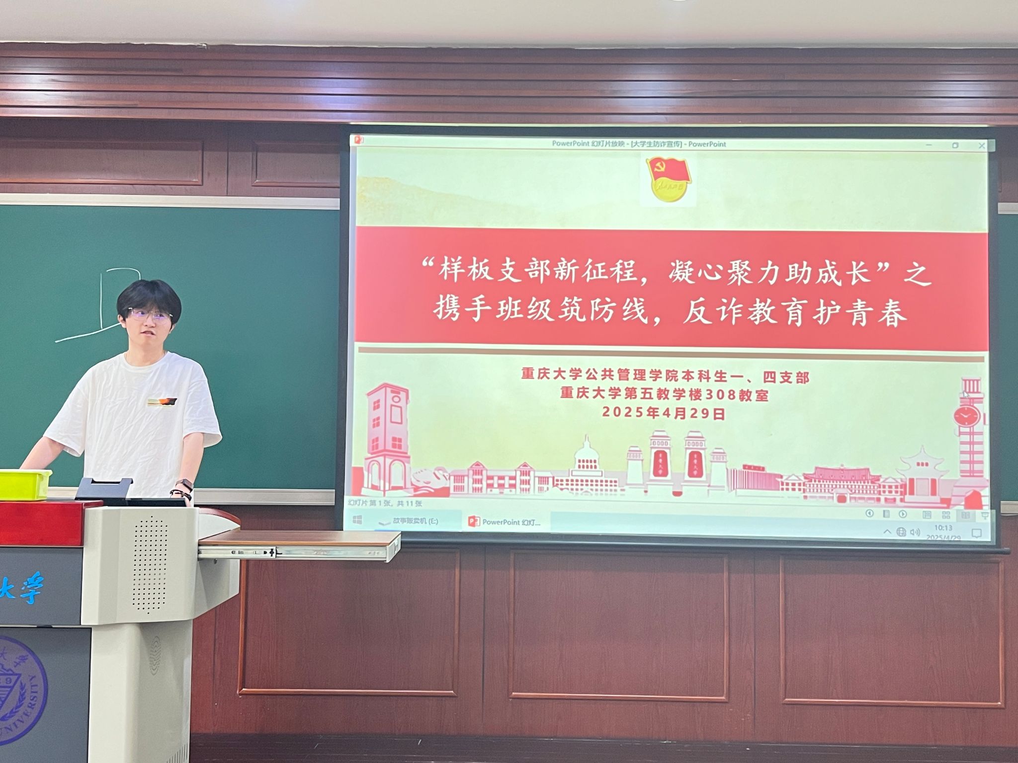 2025-04-302025年4月29日上午十点,足球比赛 本科生一、四支部携手经济学01班在第五教学楼308教室展开“样板支部新征程,凝心聚力助成长”之携手班级筑防线,反诈教育护青春主题班会活动。本科生一、四支部的党员、预备党员以及经济学01班的全体成员都积极参与了此次活动。主讲人为经济学01班班长石金阳,现场氛围热烈,反诈知识深入人心。活动伊始,主讲人石金阳通过一组触目惊心的数据敲响了防诈警钟。他提到,仅2024年一年...